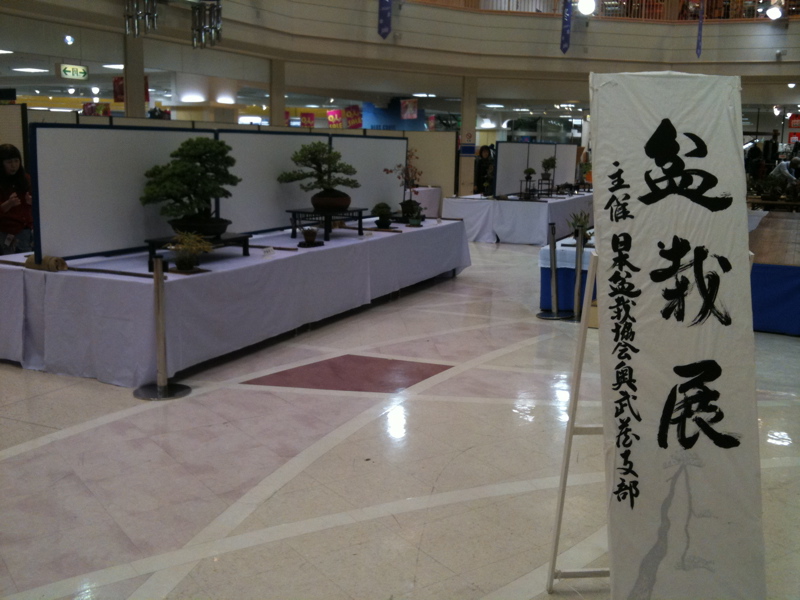 近所のスーパーで盆栽の展示会がやっていました。